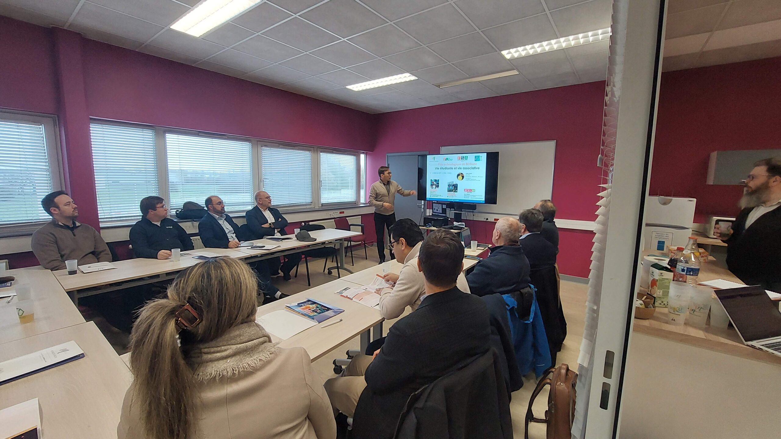Le groupe a d’abord assisté à une présentation des activités d’enseignement et de formations proposées à la Faculté ainsi qu’à l’Ecole d’ingénieurs de l’Artois. Le cursus postbac étant quelque peu différent entre les deux pays, de nombreuses questions ont été posées et ont permis d’évoquer les possibilités d’échanges qui pourraient être initiées pour les étudiants.